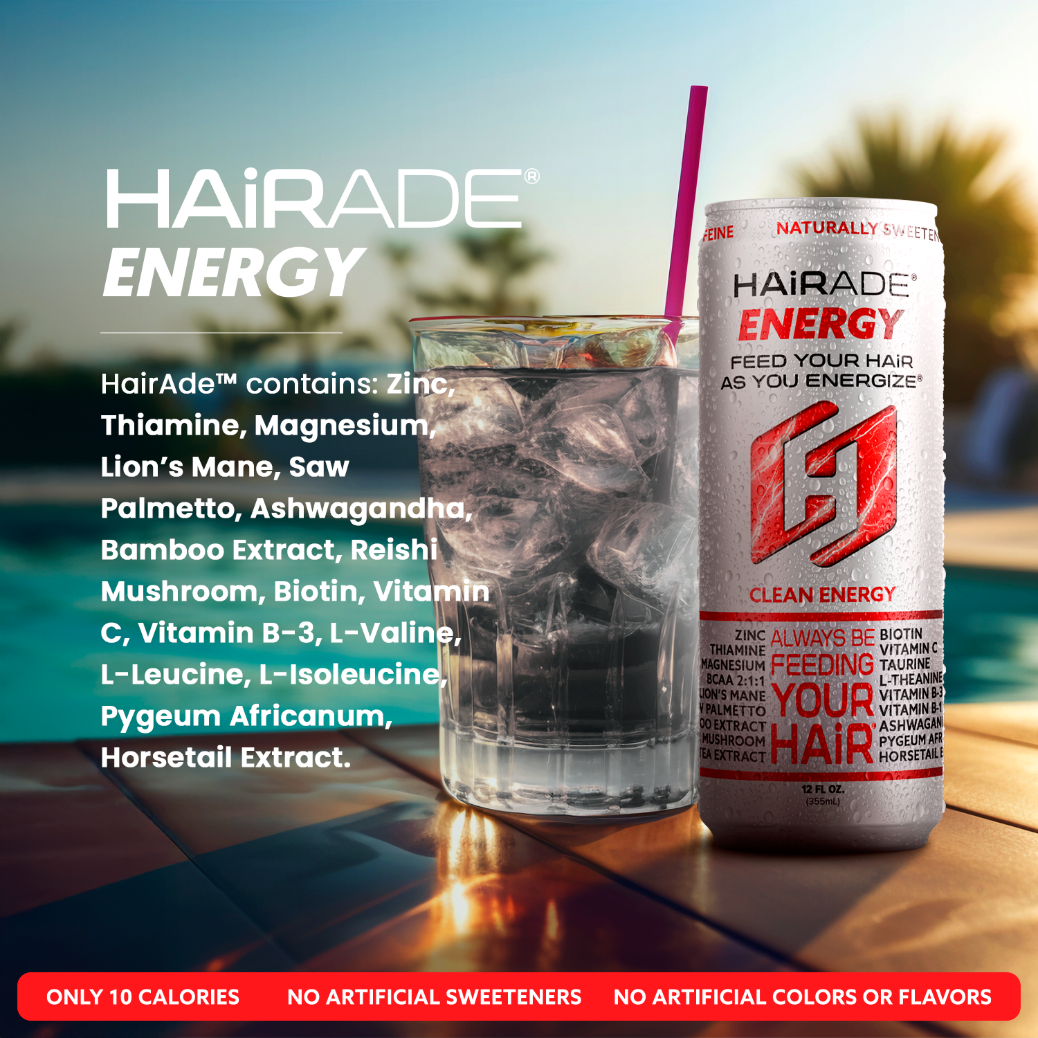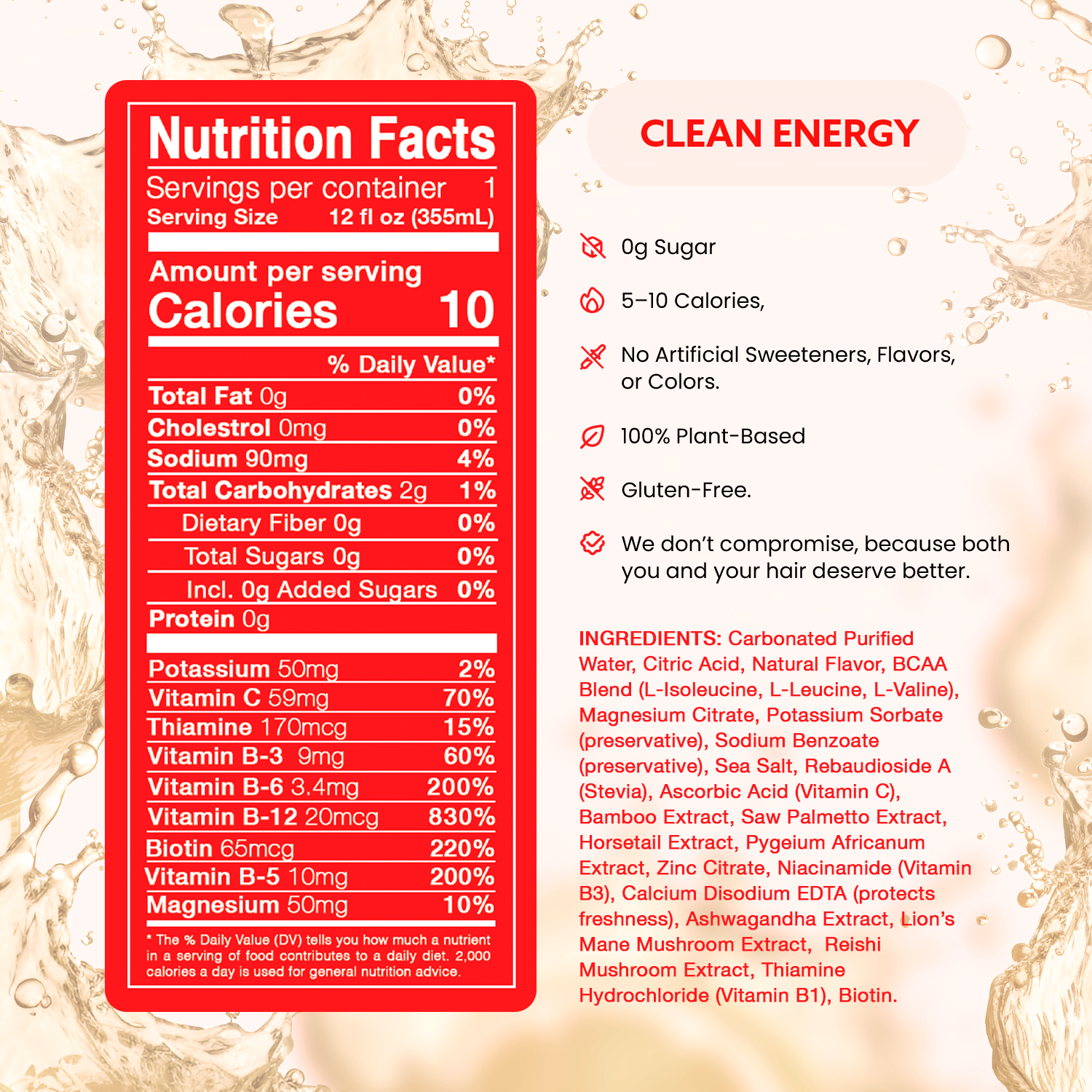 Unit price perPower up with HAiRADE™ ENERGY – a jitter-free boost fueled by natural caffeine, L-Theanine, taurine, vitamins B-12 and B-3, and green tea extract. With only 5 calories, zero sugar, and natural sweetness, this invigorating drink skips artificial flavors and colors for pure, clean energy. What makes it stand out? It’s fortified with 16 essential amino acids, key minerals, and nutrients to nurture your hair, supporting healthy growth, thickness, strength, and a radiant shine.